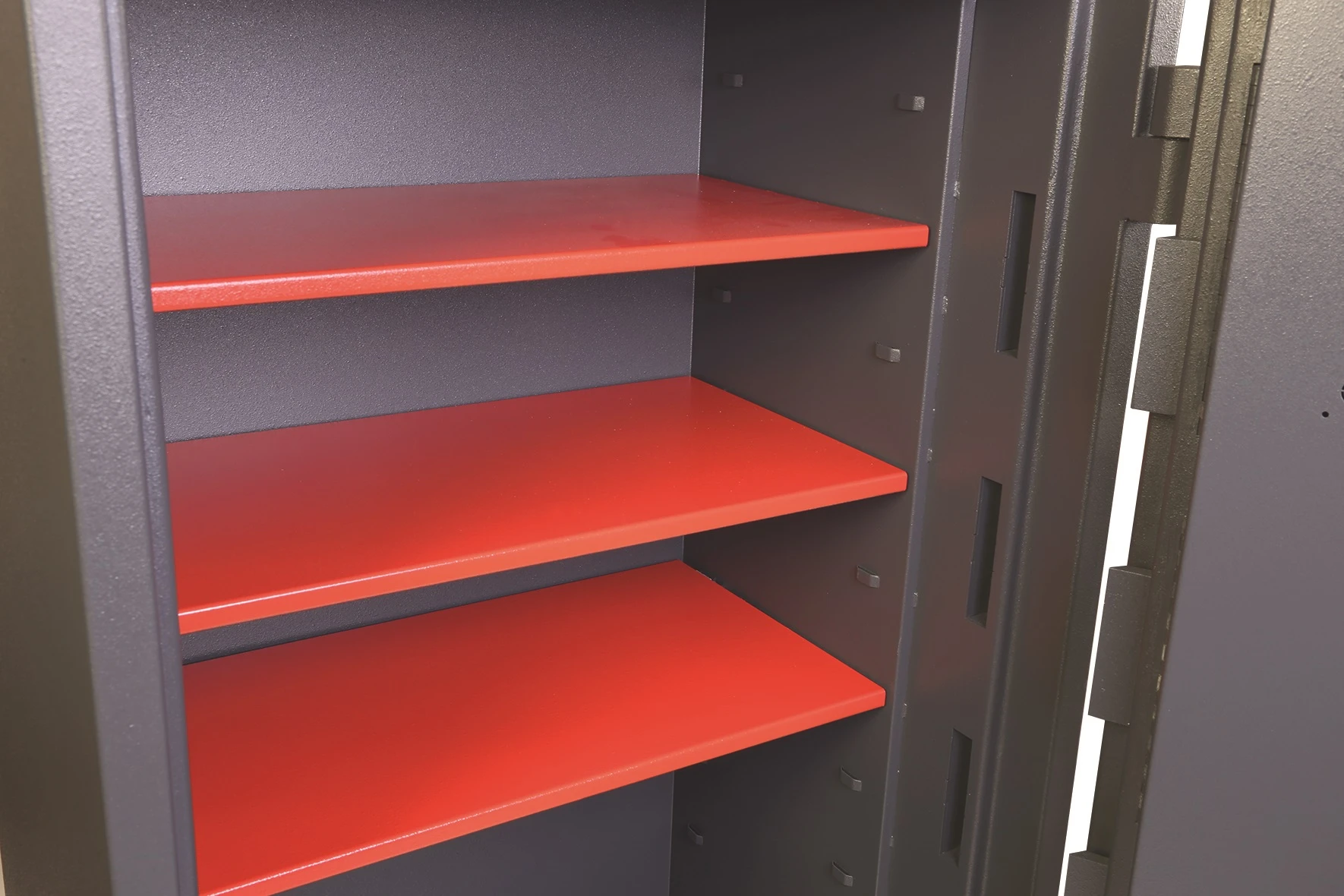 - Внутри сейфа имеются три полочки, которые можно вынуть или переставить по высоте.