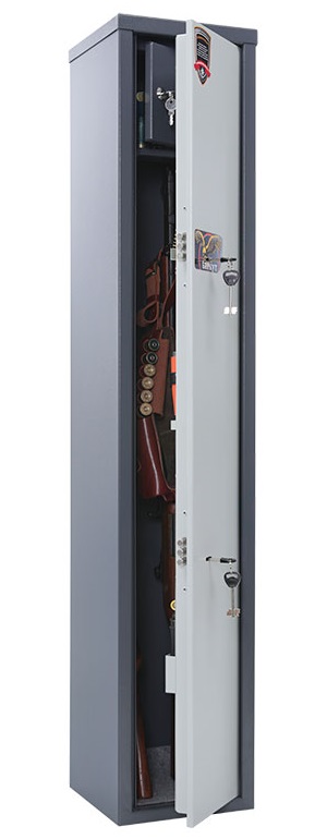 - В верхней части сейфа расположен трейзер (запирающееся на ключ отделение для патронов) размерами 199/147×246×173/90 мм. За узким трейзером остаётся свободное пространство, которое позволяет хранить ружья, по длине соответствующие высоте всего сейфа.