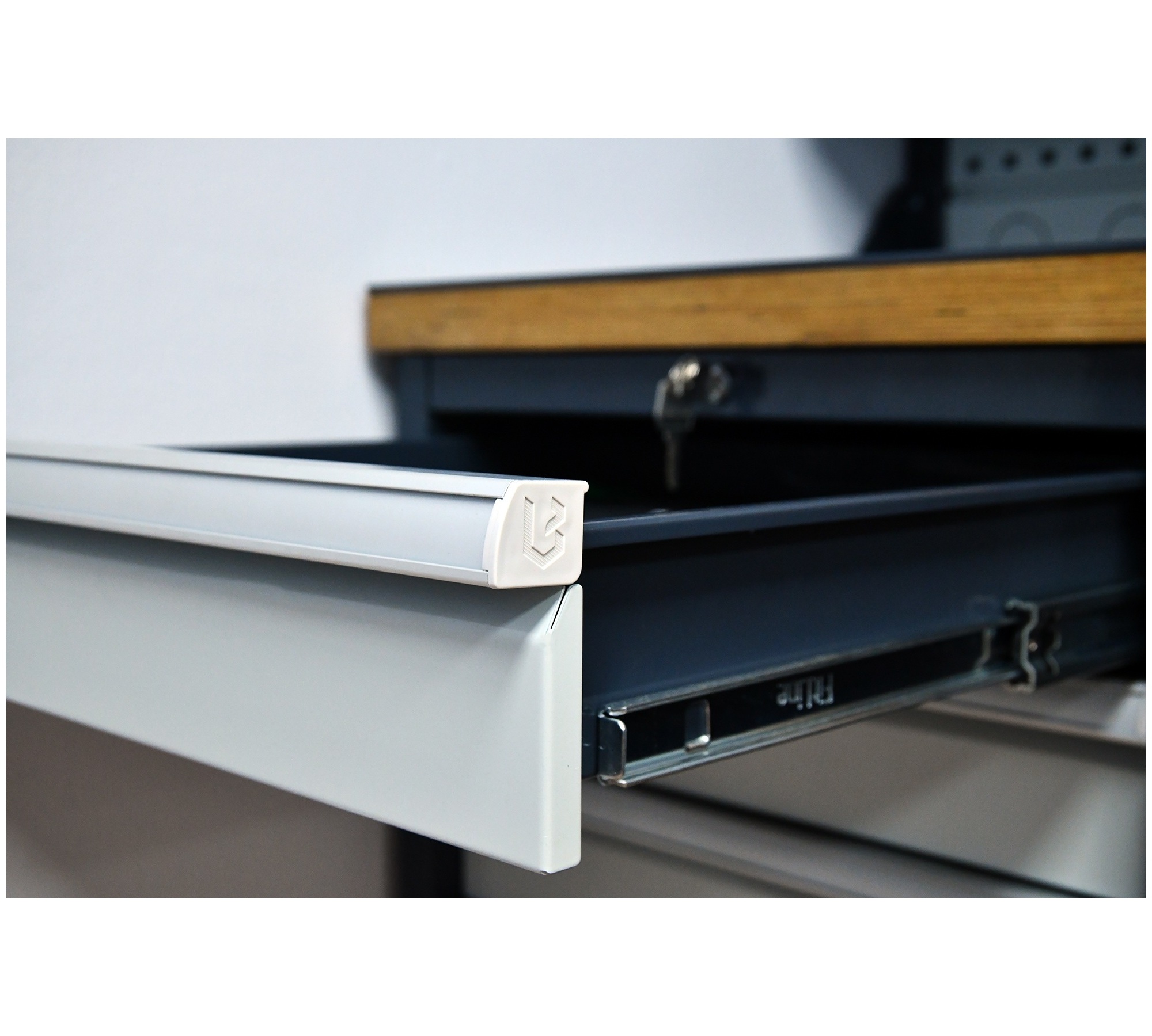 — Тумба G7 с дверцей и полкой. - Ящики тумбы G5 оборудованы усиленными шариковыми направляющими для плавного движения и высокой грузоподъёмности.